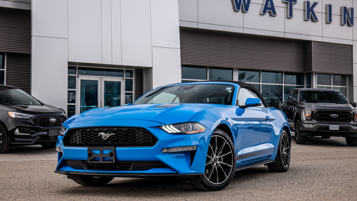 We had the pleasure of working with Watkin Motors Ford and doing the photography for their inventory briefly before moving to Vancouver Island. On one of the last days before moving, they received a few of these 2022 Mustang Ecoboost Convertibles in stock, our favorite being this one in Grabber Blue Metallic.