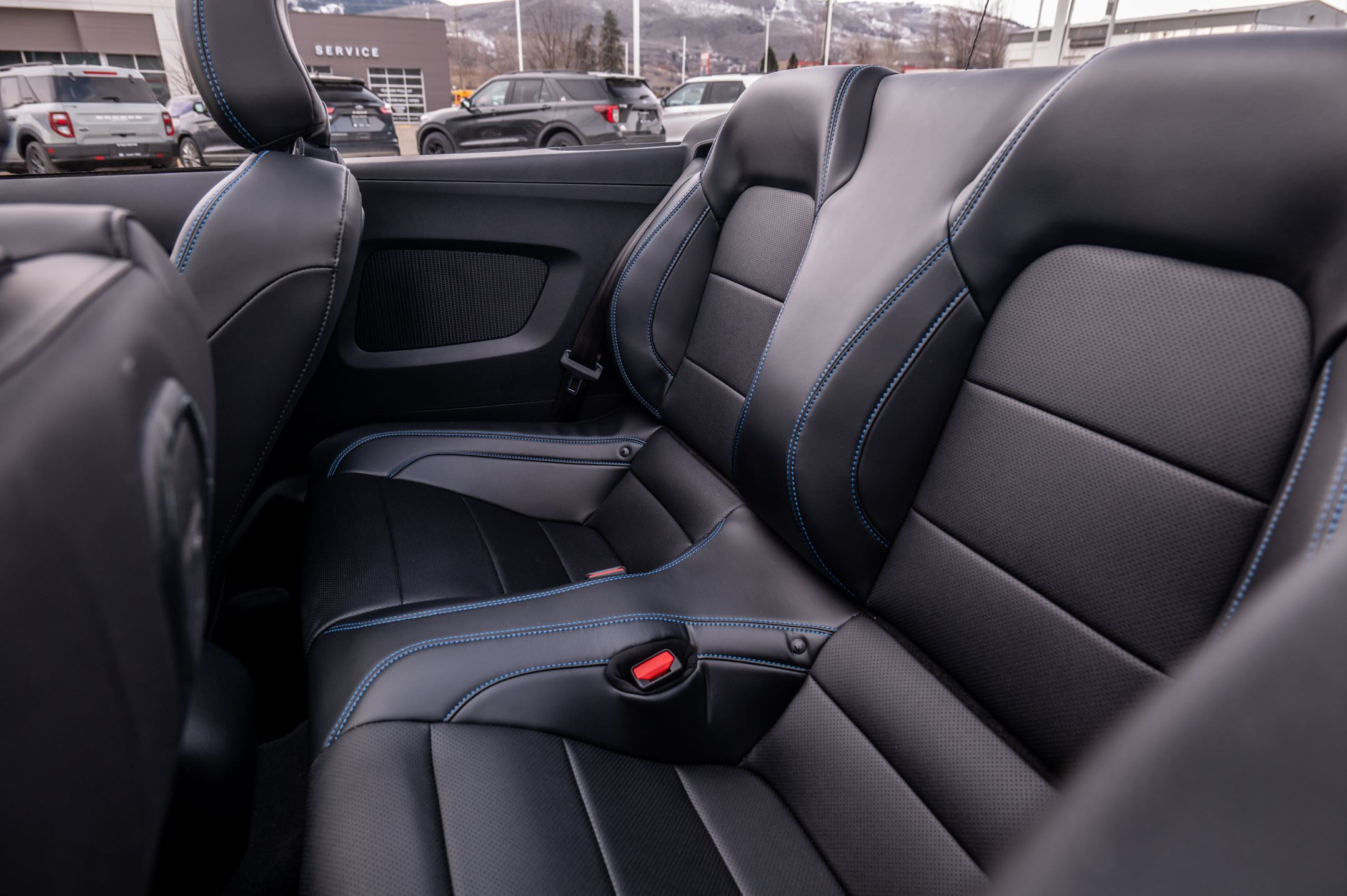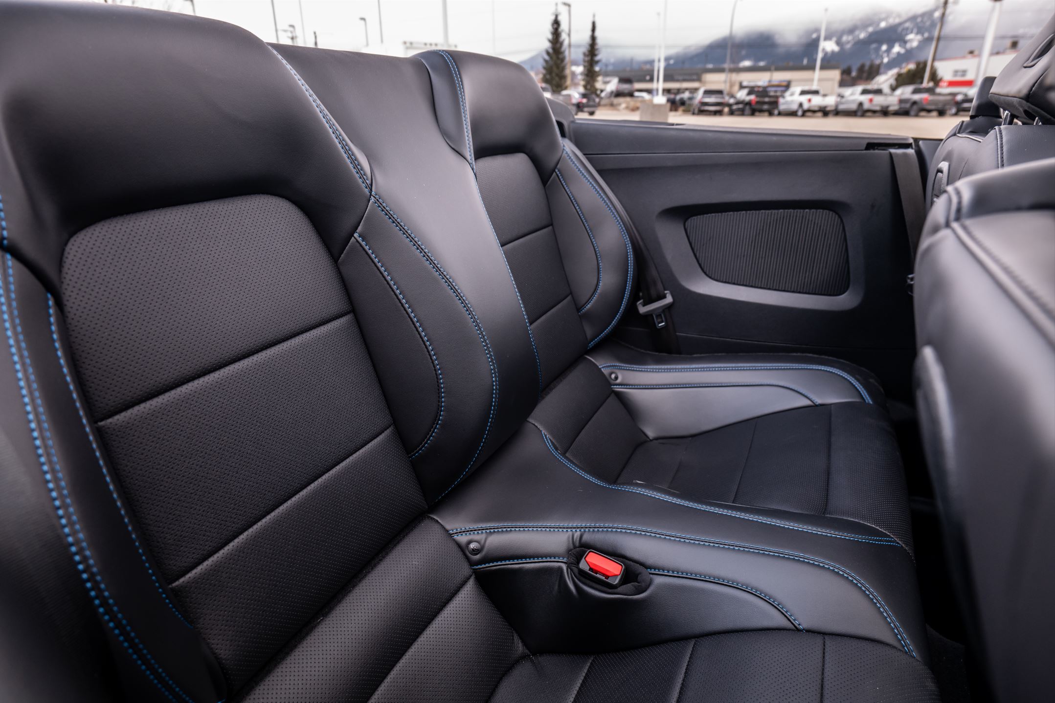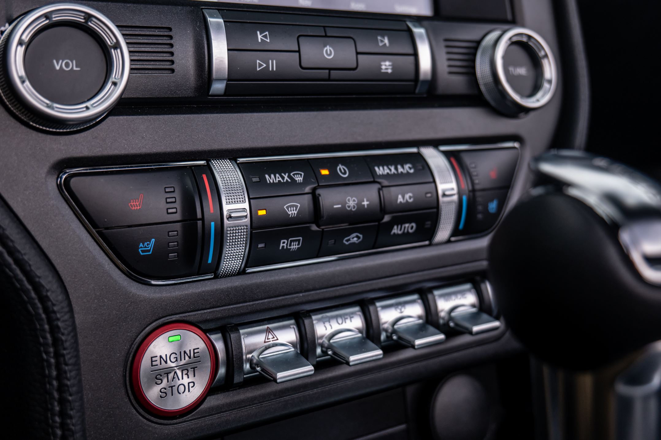 Lastly, let's move to the interior. Having this new Mustang be a convertible makes taking photos of the rear seats much easier, it also allows a lot of light to shine on the dashboard, creating eye-catching photos of the various buttons and switches.