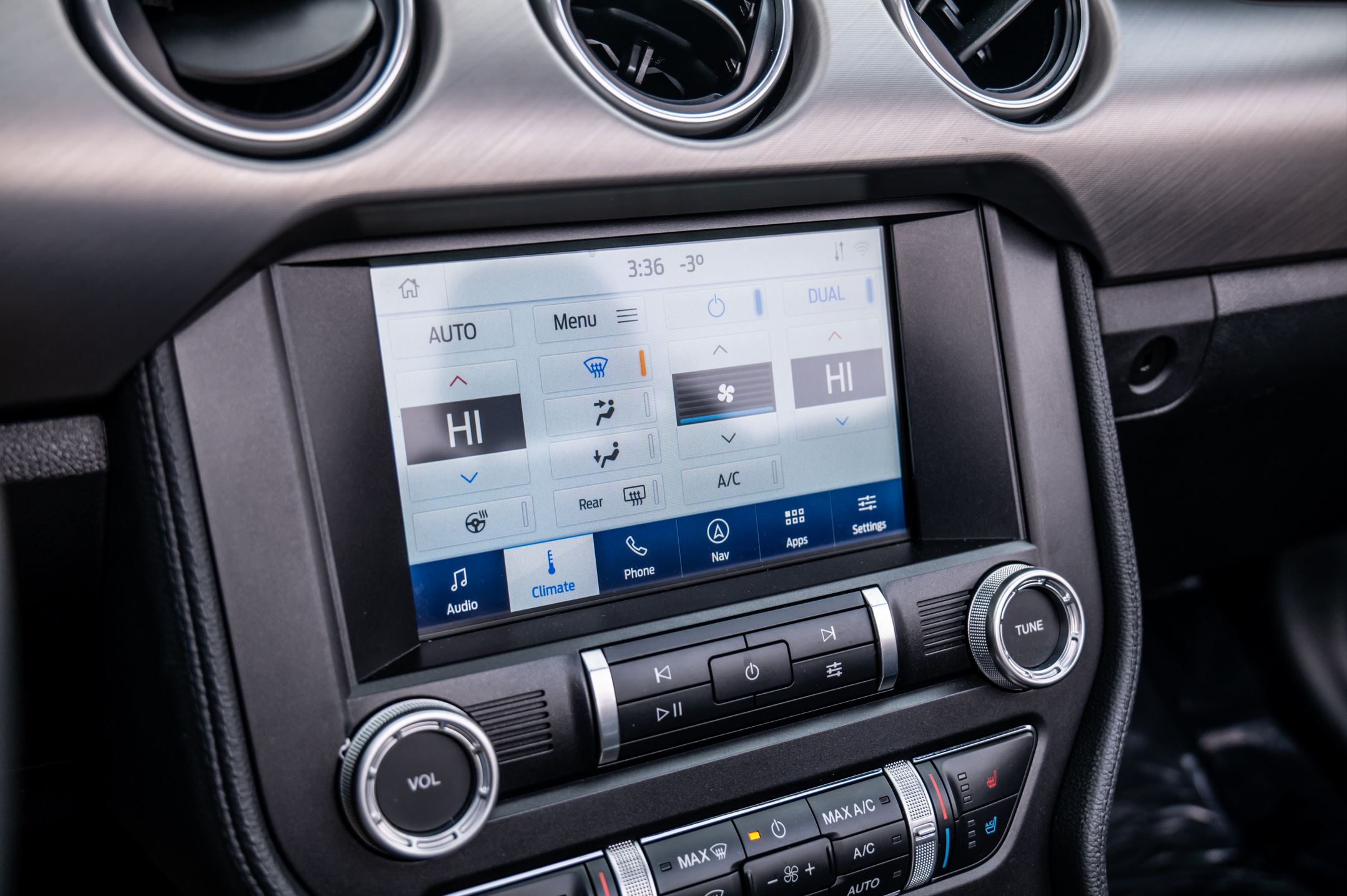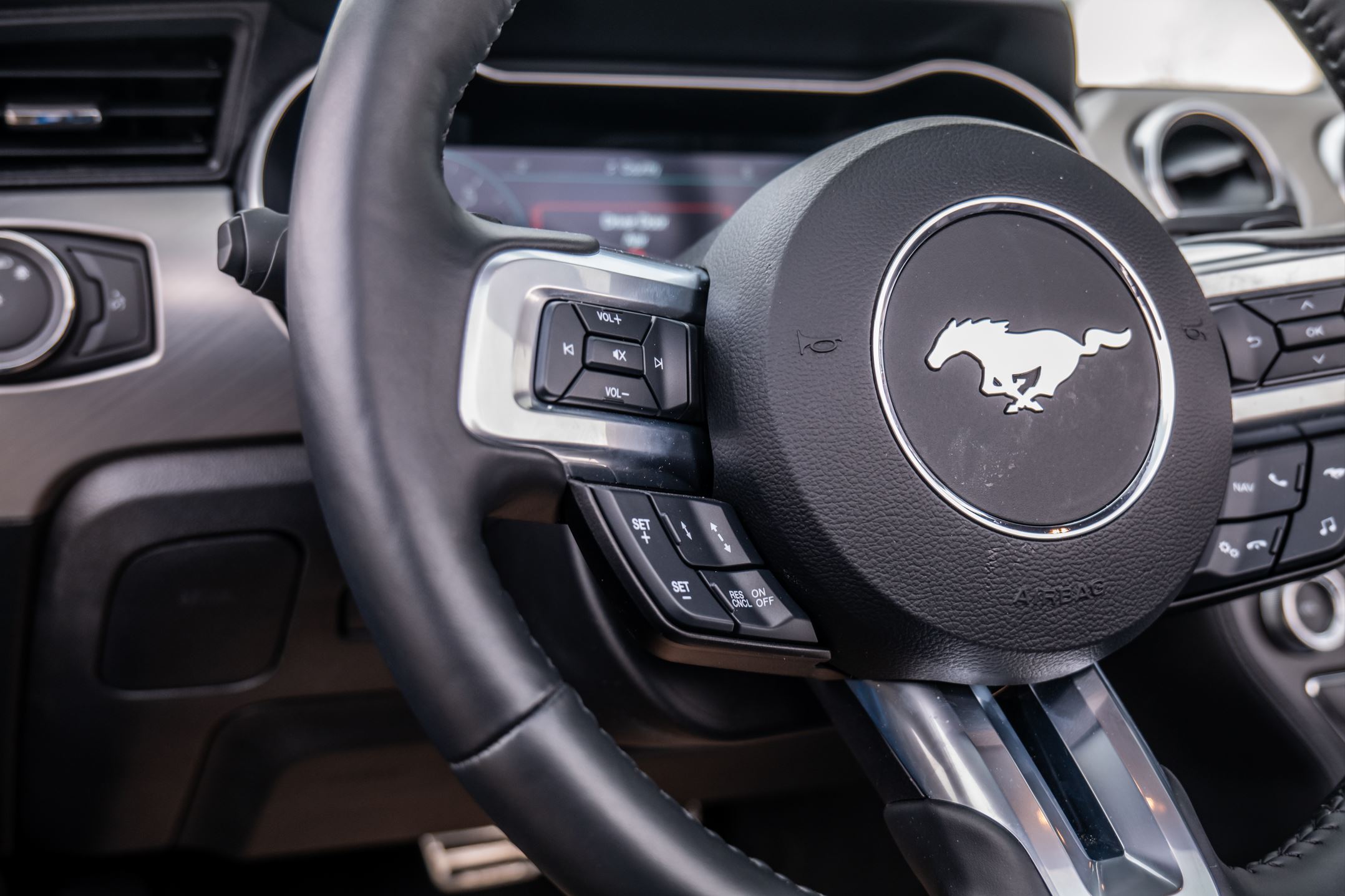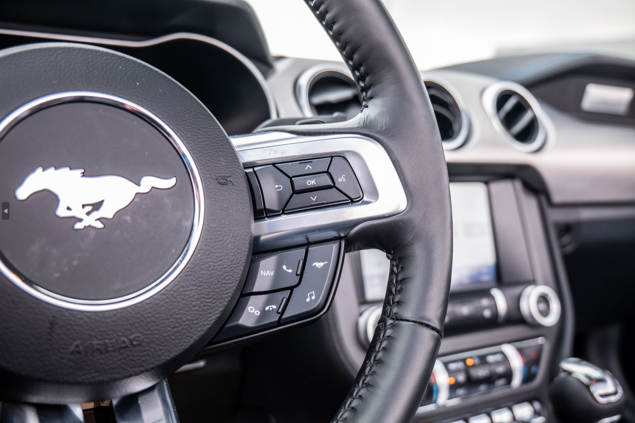 Lastly, let's move to the interior. Having this new Mustang be a convertible makes taking photos of the rear seats much easier, it also allows a lot of light to shine on the dashboard, creating eye-catching photos of the various buttons and switches.